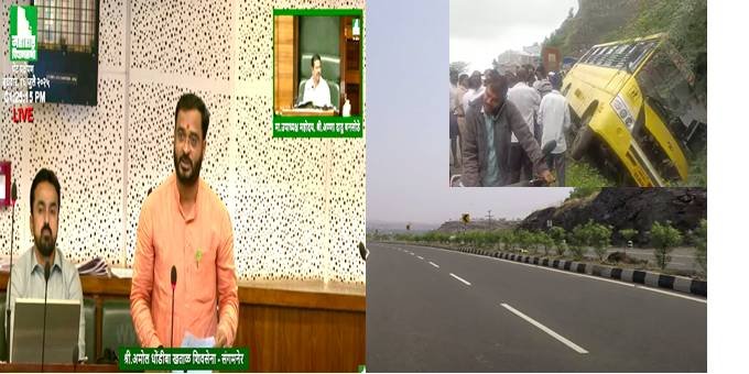 विधानसभेत बोलताना आमदार अमोल खताळ म्हणाले, चंदनापुरी घाटात ४ जुलै रोजी भरधाव ट्रक समोरून येत असताना समोरासमोर धडक होऊ नये म्हणून स्कूलबस चालकाने प्रसंगावधान राखून बस साईडला घेतली. त्यामुळे बसमधील १६ विद्यार्थी जखमी झाले होते. पुणे-नाशिक महामार्गाचं सिमेंट काँक्रीटचे काम सध्या सुरू असून तिथे एकेरी वाहतूक सुरू आहे, यामुळे हा प्रकार घडल्याचे समोर आले आहे.