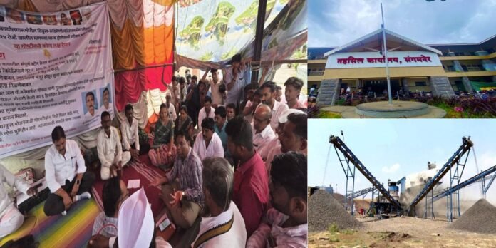संगमनेर : तालुक्यातील पिंपळे गावातील अवैध स्टोन क्रशर, देवस्थानाची बेकायदेशीररीत्या विकलेली २५० एकर जमीन आणि शासनाची बुडवलेली रॉयल्टी वसुल करण्याच्या मागणीसाठी गावातील शेतकरी आण्णासाहेब चकोर व रमेश ढोणे यांनी ३० सप्टेंबर २०२५ पासून विठ्ठल मंदिरासमोर उपोषण सुरू केले होते. ग्रामपंचायतीच्या कारभारातील अनियमितता आणि अनधिकृत उत्खनन याविरोधात ग्रामस्थ आक्रोश व्यक्त करत होते.