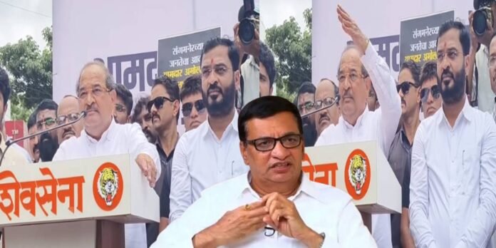 संगमनेर : आमदार अमोल खताळ यांच्यावर झालेल्या हल्ल्याच्या निषेधार्थ आज संगमनेरमध्ये मोर्चा काढण्यात आला. या मोर्चात संगमनेर तालुक्यातील नागरिक आणि महायुतीचे कार्यकर्ते मोठ्या संख्येने सहभागी झाले. तसेच या निषेध मोर्चात भाजप मंत्री राधाकृष्ण विखे पाटील यांनी देखील सहभाग घेत माजी मंत्री बाळासाहेब थोरात यांच्यावर जोरदार टीका केली.