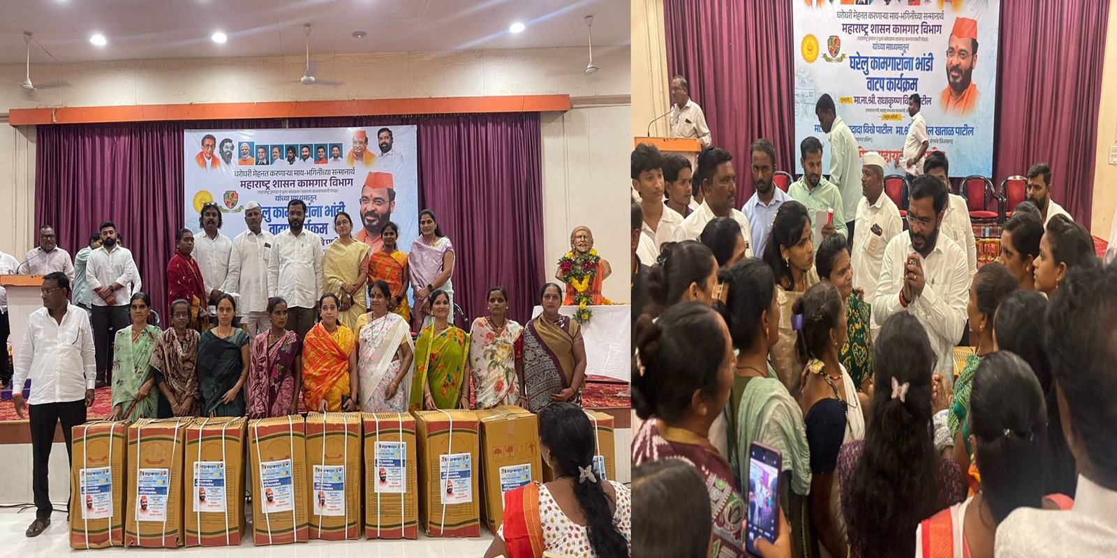 संगमनेर : मालपाणी लॉन्स हॉल, संगमनेर येथे महाराष्ट्र शासनाच्या कामगार विभाग तसेच महाराष्ट्र इमारत व इतर बांधकाम कामगार कल्याणकारी मंडळाच्या सहकार्याने घरेलू कामगार महिलांना भांडी वाटप करण्यात आले. संगमनेरचे आमदार अमोल खताळ यांच्या प्रमुख उपस्थितीत हा कार्यक्रम पार पडला.