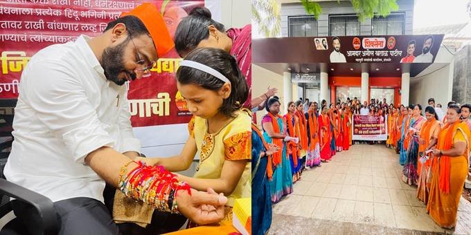 संगमनेर : लव्ह जिहाद, धर्मांतरण आणि हिंदू धर्मविरोधी कारवायांवर आवाज उठवण्यासाठी संगमनेरमध्ये “एक राखी धर्मरक्षणाची” हा विशेष उपक्रम पार पडला. आमदार अमोल खताळ यांच्या जनसंपर्क कार्यालयात या कार्यक्रमाचे आयोजन सकल हिंदू समाज, संगमनेर यांच्या वतीने करण्यात आले होते.