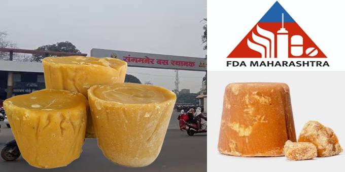 संगमनेर : “सिद्धी शुद्ध नैसर्गिक गुळ” या उत्पादनात भेसळ झाल्याचे पुणे येथील कियान लॅबच्या अहवालातून उघडकीस आले आहे. या अहवालानुसार गुळाच्या तपासणीत गंभीर तफावत आढळून आली असून, अन्न व औषध प्रशासनाच्या नियमांनुसार त्याला मानांकन नसल्याचे स्पष्ट झाले आहे. मात्र, या अहवालानंतरही प्रशासनाकडून कारवाई होत नसल्याचा आरोप स्थानिक नागरिकांनी केला आहे.