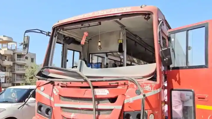 यानंतर बसच्या मागील वाहन एकमेकाला धडकले.