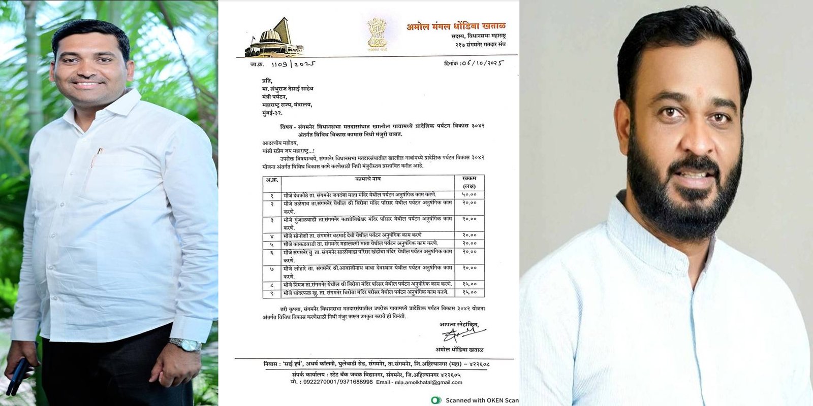 जगदंबा माता मंदिराच्या सुशोभीकरणासाठी मंजूर झालेल्या 50 लाख रुपयांच्या निधीचे श्रेय आमदार अमोल खताळ यांचेच आहे. हा निधी मिळण्यासाठी सर्व कागदपत्रांची पूर्तता करत प्रस्ताव तयार करून जिल्हाधिकारी यांच्याकडे पाठवला. तिथून पुढे तो मंत्रालयात गेला परंतु विधानसभा निवडणूक आचारसंहितेमुळे तो प्रलंबित होता मात्र आमदार अमोल खताळ यांनी पर्यटन विकास मंत्री शंभूराज देसाई यांच्याकडे सतत पाठपुरावा केला असल्यामुळेच हा निधी मंजूर झाला आहे.